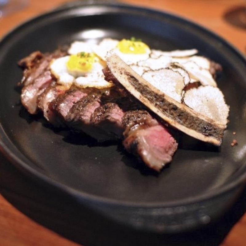 Extender mantequilla sobre el filete y sazonar con sal y pimienta. Asar a la parrilla el filete a la temperatura deseada (yo recomendaría medio-poco hecho), y dejarlo reposar durante un minuto o dos. Reposar es importante para que la sangre pueda fluir de nuevo hacia las fibras musculares, haciendo que sea un filete jugoso. Mientras tanto, freír los huevos de codorniz en una sartén antiadherente según se desee; calentar la salsa. Cortar el filete en lonchas a la contra, colocar los huevos en la parte superior y rallar algunas trufas frescas por encima. Salpicar con la reducción de vino tinto y aderezar con el cebollino troceado. Servir inmediatamente.
