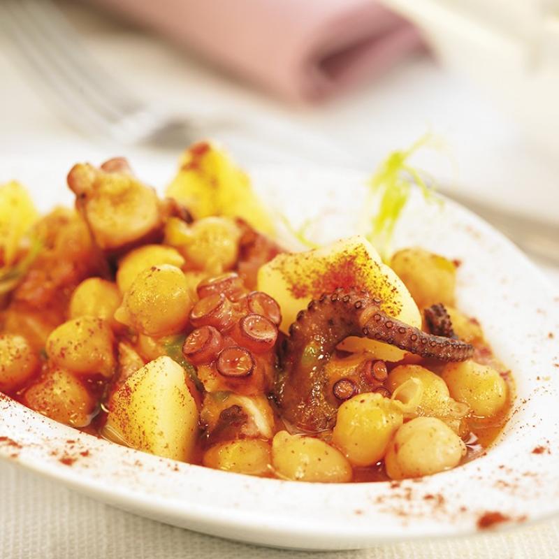 500 ml de agua de cocer el pulpo500 g de garbanzos cocidos