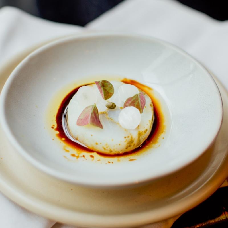 Halibut con algas y setas