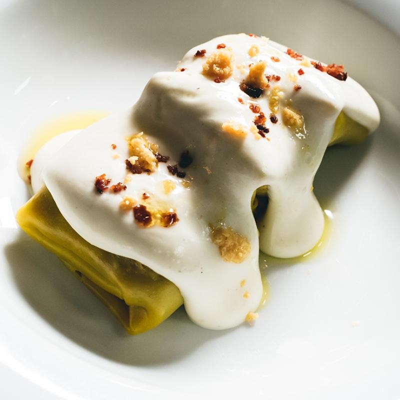 - En un plato hondo colocar una cuchara de puerro confitado.