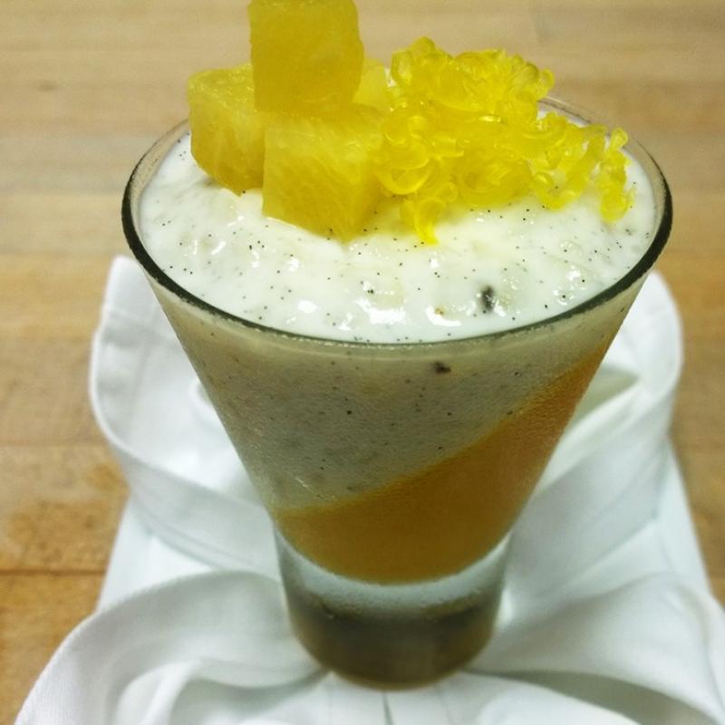 - Fraccionar en la parte superior del gelée de fruta de la pasión y dejar reposar.