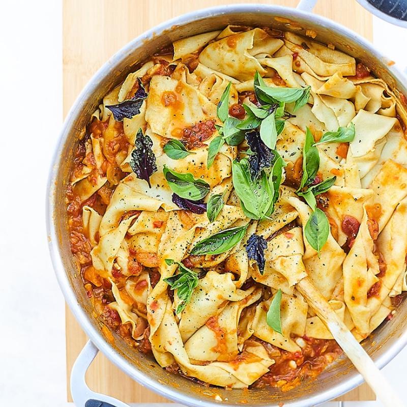 No olvidar añadir un buen puñado de queso, porque todo sabe mejor con parmesano. Y sí, también unas hojas de albahaca.