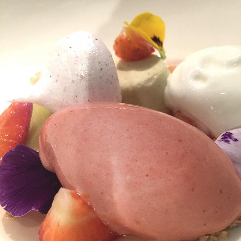 Verano en el norte de Noruega postre con ruibarbo y fresas