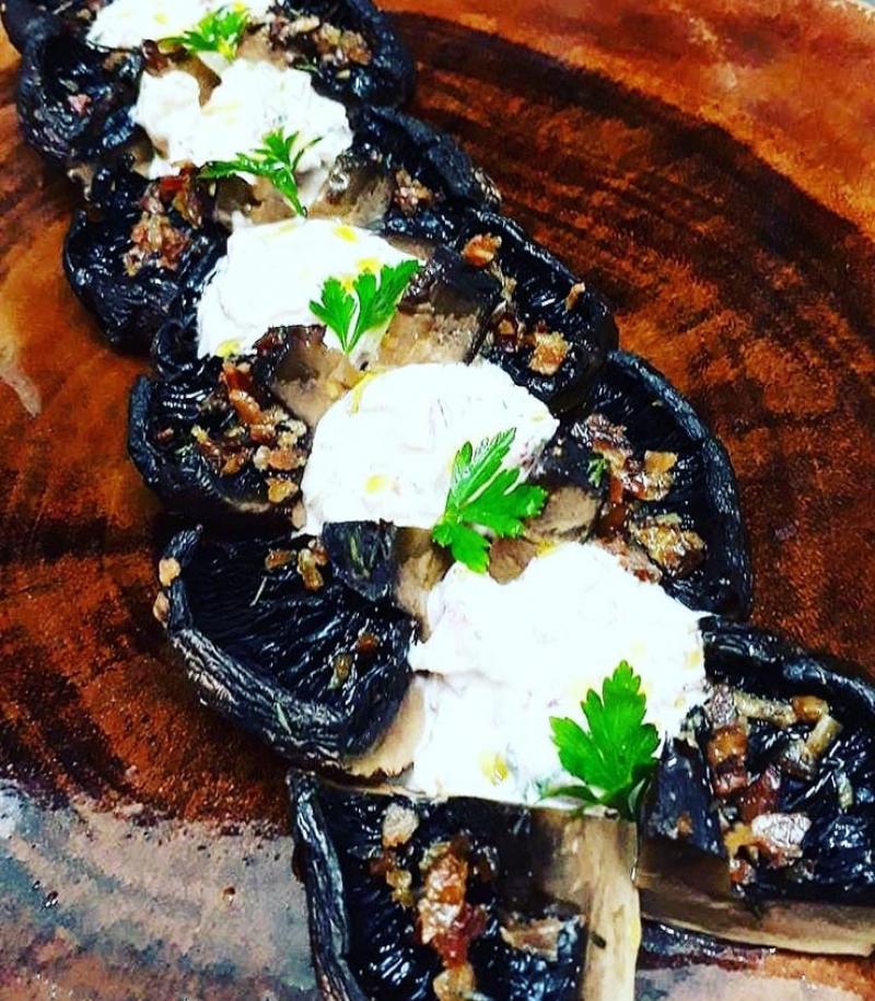 Pechuga de pato a la parrilla con miel, salteado de col y zumo de setas y cerveza